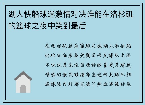 湖人快船球迷激情对决谁能在洛杉矶的篮球之夜中笑到最后